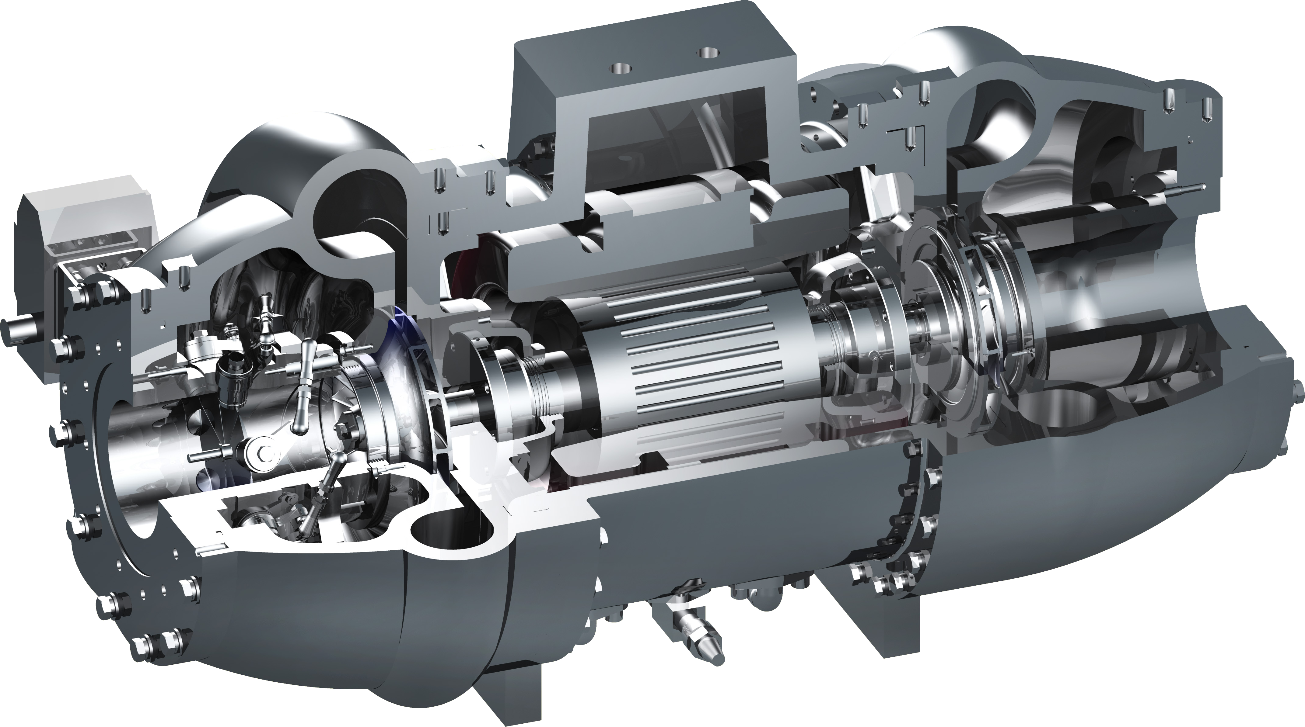Компрессор с приводом от постоянного тока оснащен инвертором, позволяющим снизить нагрузки при запуске и регулировать скорость рабочих колес при уменьшении тепловой нагрузки на чиллер.